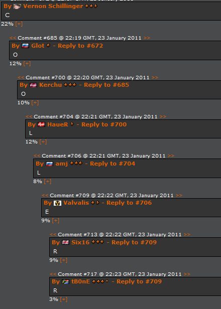 Comment's would be [+]'ed or [-]'ed, with the best ones being at the top, lowest at the bottom or hidden. So basically the comments would be sorted by popularity rather than time posted.