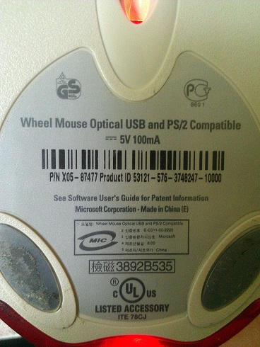 Then there is my current mouse...which may or may not be a WMO, I found it laying around my dads house. Its grey on the bottom, not translucent, and it says