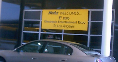 Choosing Hertz car rentals, we found a huge E3 welcoming banner at the car rental place.