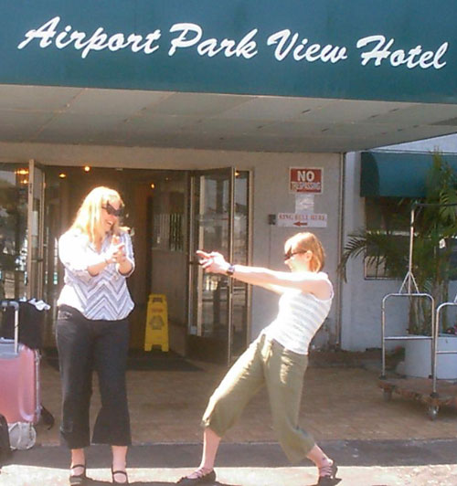 May 15:Waking up at 8am, we planned to rent a car and drive to Tijuana, Mexico. Deciding the airport was the best place to find a car rental place, we had to wait until midday for the hotel shuttle to take us there. While waiting we had a small photoshoot with the awesome glasses.