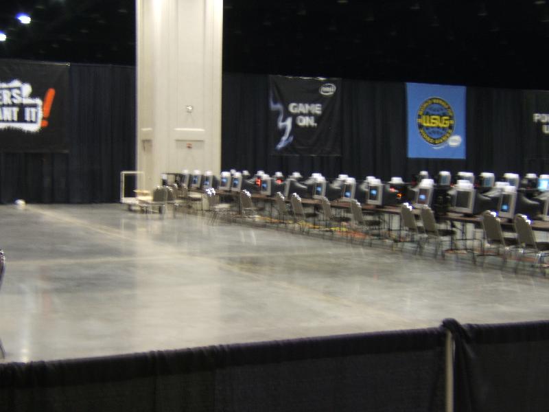 The tourney area was gigantic. Every PC was a Fatal1ty pc with a fatal1ty sound card inside with fatal1ty headphones and fatal1ty mice attached to them.