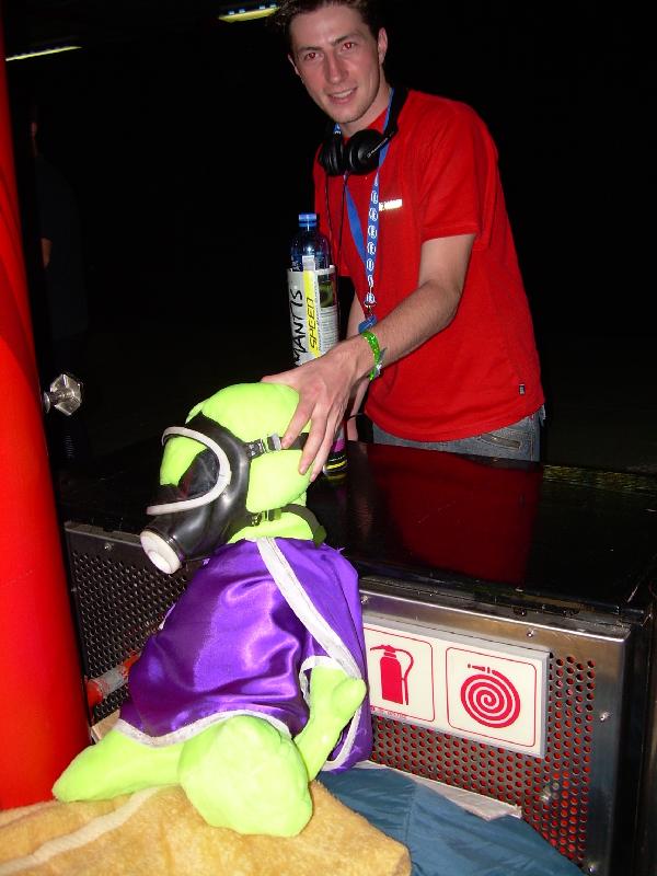 P4 touched this guys mascot and it fell all over the place.