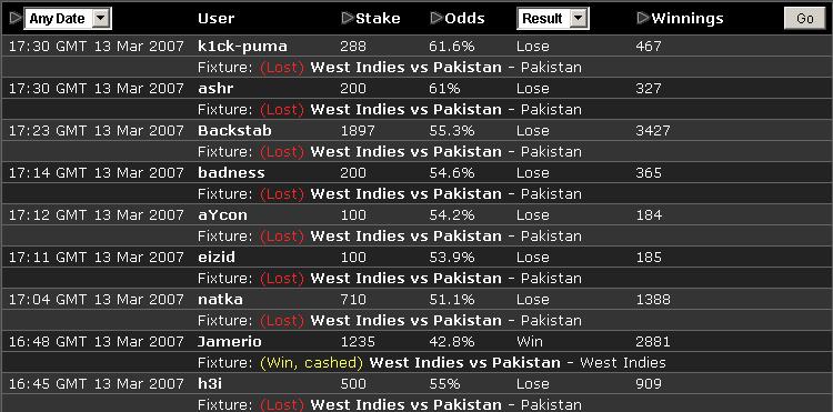 Bets placed: E$1235, betting open: 11:38 CDT 13 Mar 2007 to 12:34 CDT 13 Mar 2007
