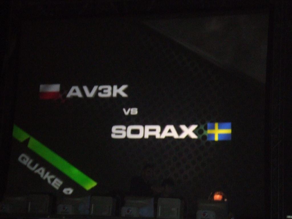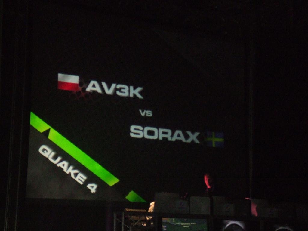 The Quake 4 afternoon stage event. The matchup is between Av3k of Poland and Sorax of Sweden. I went ahead and told Wakelin that the Pole was obviously going to kick some ass in this game, to which he scoffed quite considerably.