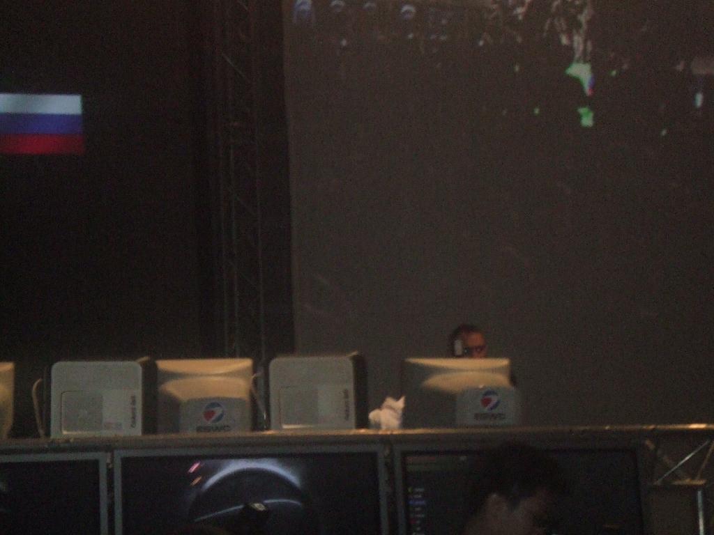 Av3k and an organiser behind his monitor.
