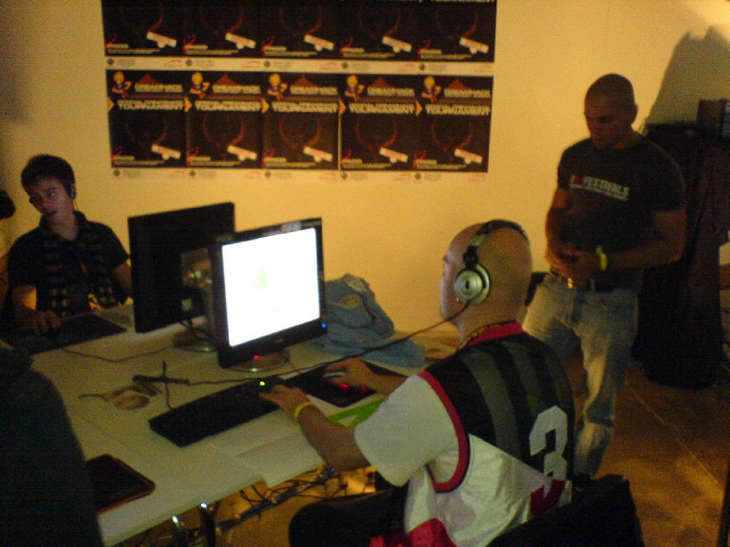 The crazy german Adrenalin had a few problems with his setup to start with. Nabbe standing right beside him, making sure noone gets too close. (Destrux aka Inferno to the far left)