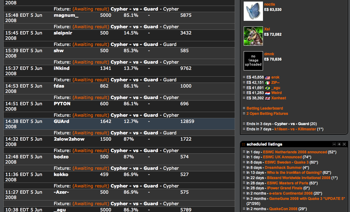 Bets placed: E$34539, betting open: 12:11 CDT 4 Jun 2008 to 13:00 CDT 9 Jun 2008