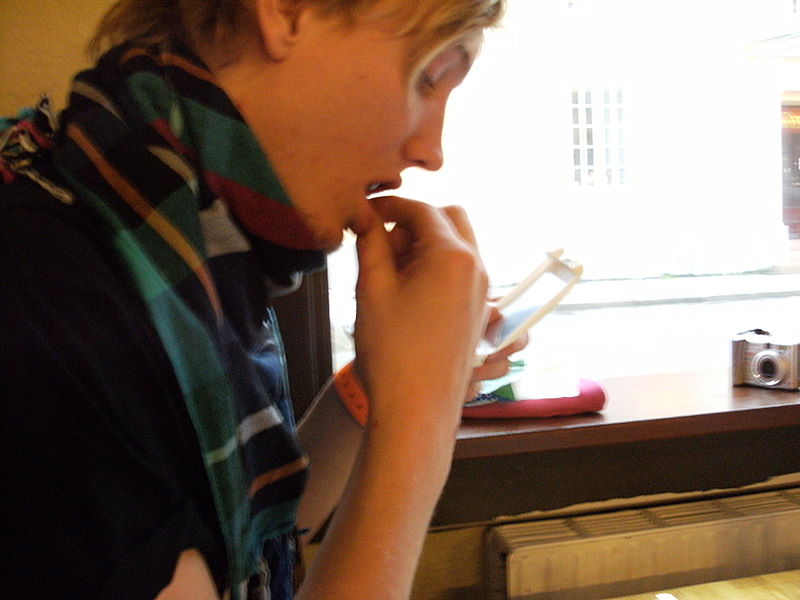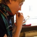 fixing his makeup