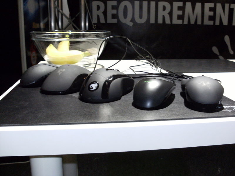 Some Razer mouses with the new roccat mouse in the middle. Never used Razer so I quickly forgot which mouse is called what.