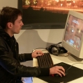 With that jacket he looks like he walked in off the street, sat down, and started pwning. Style!
