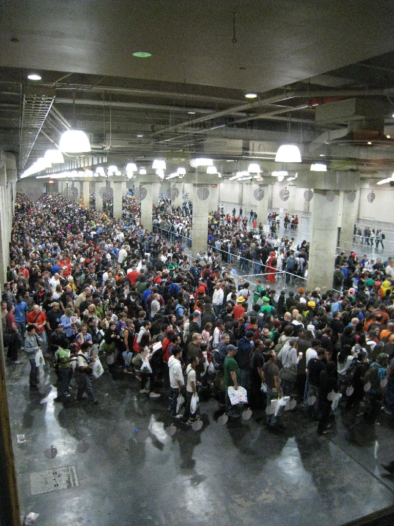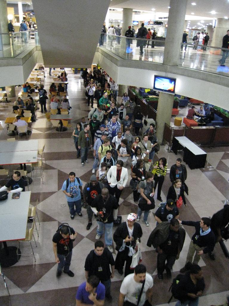 ... lots of people walking to ...