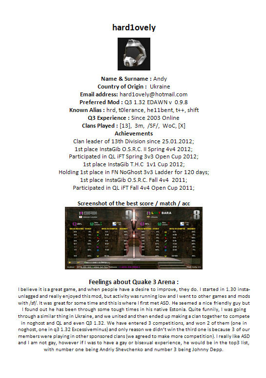 He wanted to reformat a few things and never really got into finishing it, since today we got banned. Because he wanted to use a screenshot, I have since reused it. (the screen shows a retarded Ukrainian e- team who makes pearls of wisdom such as "what this? you idiot or cheat" etc. and has nothing to do with either hard1ovely or roxor).