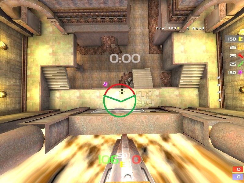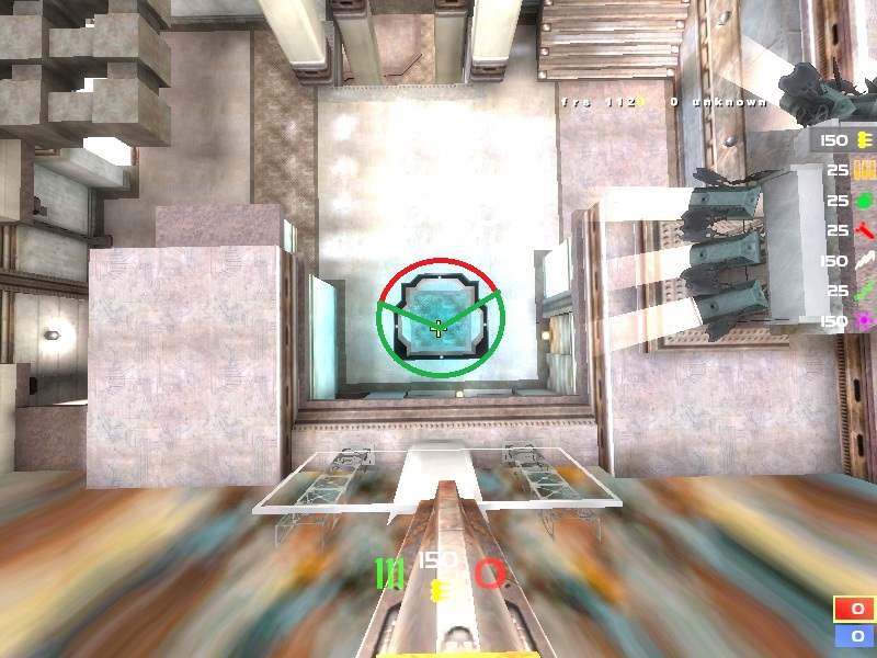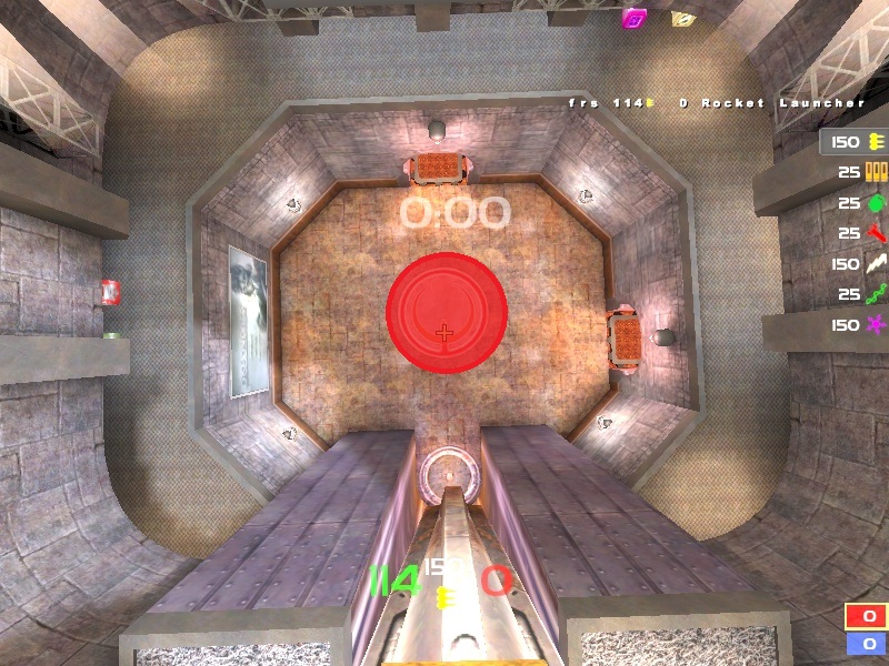 The layout is highly fluid with plenty of choke points, and has enough room to navigate without feeling claustrophobic (I know some TDM maps in the past were criticized for being too tight), and is vertical enough to ensure interesting fights. The item placement seems fairly balanced as well, with a MH in one of the middle rooms and a Quad in back, with a RA on one side and two YA's on the other. It doesn't seem like any room has too much weight, the MH has a LG but the LG is easy to attack and I doubt anyone will be controlling MH with it alone, especially with the connectivity this arena provides. The two YA's are good for teams out of control of the map. RG is available, but it's in a low room and in a pool of murky water, so I doubt it would dominate the map and promote +backing / camping. There's no other PU's besides the Quad - quad is also prone to being attacked with ease due to it's low positioning.