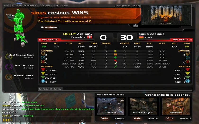 Now when both players 'cosinus', 'ziRe' or 'vanBasten' played against each other, then everything seemed normal. But when I jumped in and played against one of both, they were able to do multiple times more damage than I was able to do. After a few bogus rounds, we decided to change the server and the damage output was again back to normal for me.