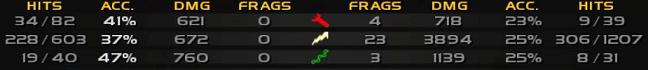- Damage output between players unbalanced (compare shots fired with inflicted damage)