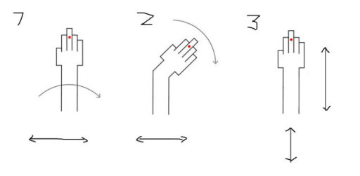 Suprisingly hand 1 belongs to the second set of movements tho the sensor aligning with the middle of the arm. This setup is most common i think because its a good way to hold the mouse comfortably. This results in unintended crook transmission.