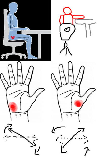 Changing seats like shown can result in the same, because in the left seat there is more contact face on the spoke bone, whereas on the right the contact face is more equally distributed between spoke bone and ulna.