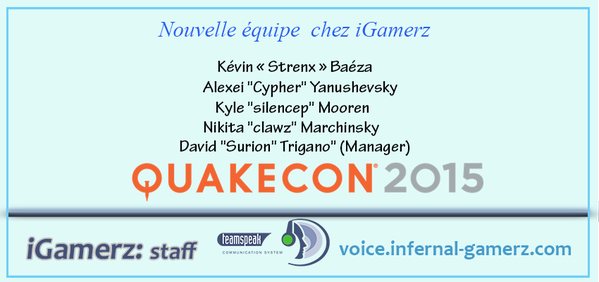 Jean-Michel: "I am delighted to welcome the likes of strenx, Cypher, and Silencep and clawz for this QuakeCon in Dallas. I hope the faithful community will support iGamerZ and follow us throughout this event! Soon for new adventures with us!"