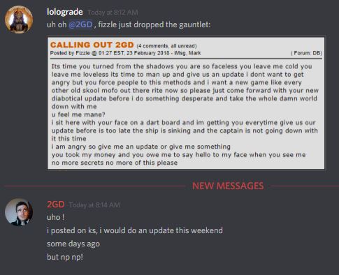 Its time you turned from the shadows you are so faceless you leave me cold you leave me loveless its time to man up and give us an update i dont want to get angry but you force people to this methods and i want a new game like every other old skool mofo out there rite now so please just come forward with your new diabotical update before i do something desperate and take the whole damn world down with me