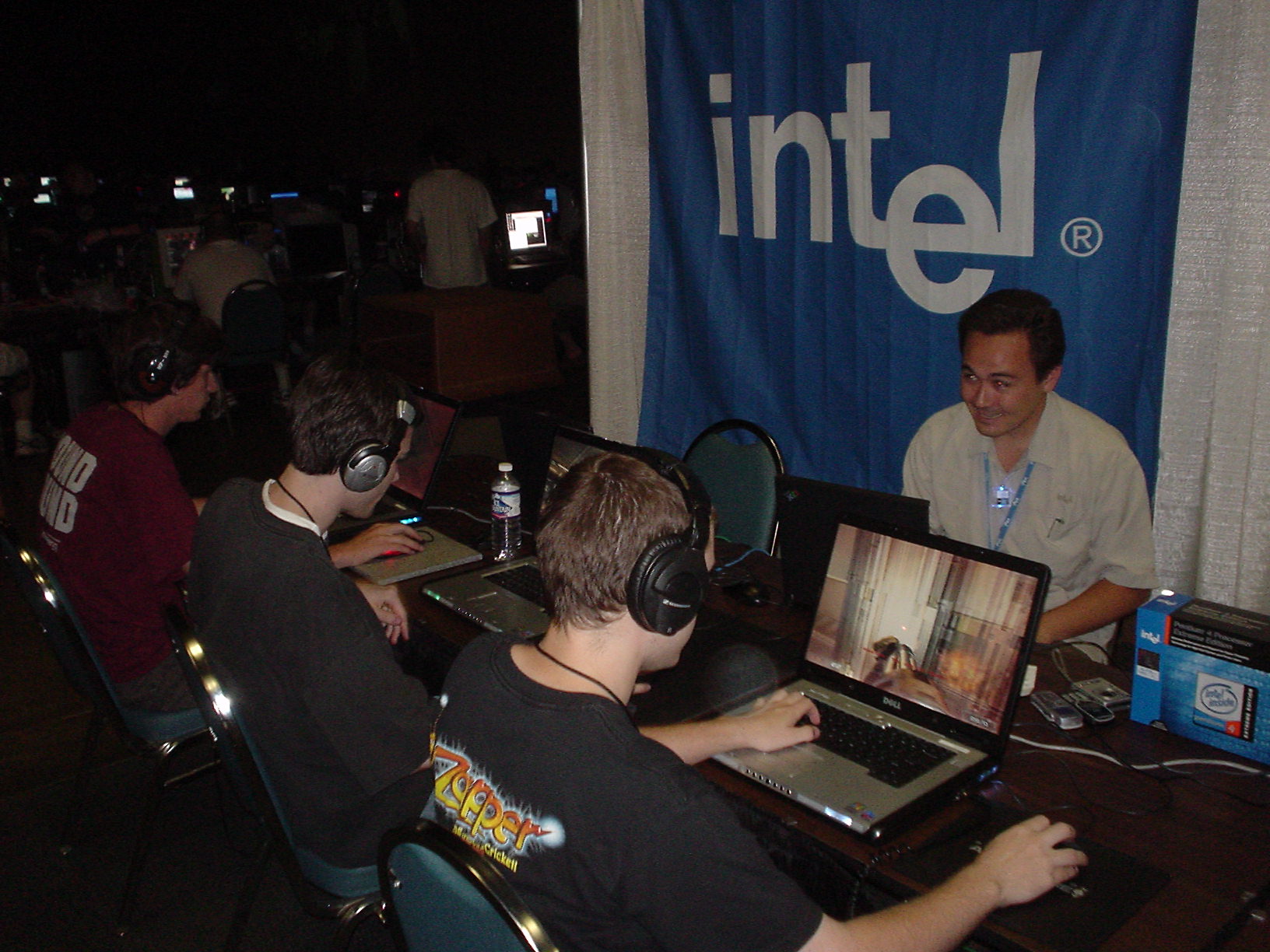 We all know Doom 3 multipla yer is about as fun as putting your fingers through a tablesaw, but with 2 P4 3.73 Extreme Edition processors up for grabs, many of the UT pla yers who were able to get up at 9am for this tourney particiapted. Here we see some joker, dx:ep1taph, and Lotus->G competing in the qualifier rounds.