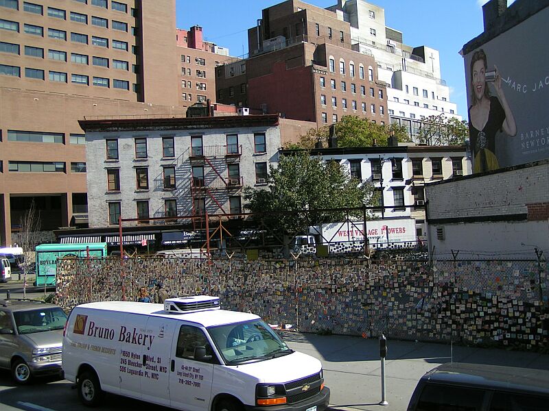 This little corner is about a mile from the WTC but stands as a small reminder of those who died in the events of 9/11. Each plaque was secured to the fence after the first 5,000 were stolen as souveniers :/
