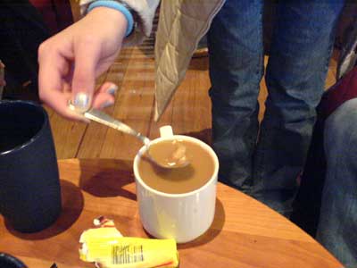 "Five sugars won't even dissolve in a mug of coffee", I say.